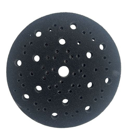 This 6 inch diameter multi-hole interface pad is designed to add controlled cushioning between a backing pad and a grip sanding disc while maintaining proper dust extraction. Placed between the backing pad and abrasive, it softens the sanding action and helps the disc follow curves, contours, and rounded surfaces more evenly.